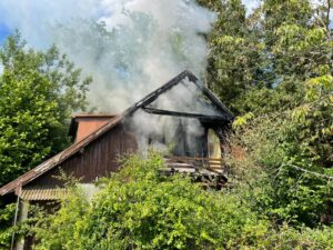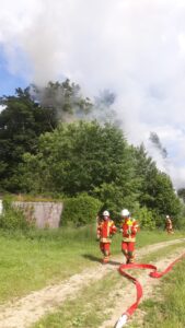 Zum Brand eines leerstehenden Wohngebäudes wurden wir am Freitag Nachmittag alarmiert. Das Gebäude am Ende der Kohlstattstraße stand bei unserem Eintreffen im Bereich des Obergeschosses in Flammen. Sofort ging ein Trupp unter Atemschutz in das Gebäude vor und begann mit der Brandbekämpfung. Das Gebäude wurde auch nach eventuell sich darin befindlichen Personen abgesucht. Parallel wurde von der Kohlstattstraße her eine Wasserversorgung zum Brandobjekt gelegt. Da das Objekt abseits der Straße an einem Feldweg liegt, war eine etwas längere Schlauchleitung notwendig. Um ausreichend Löschwasser und Wasserdruck sicherzustellen, mussten wir eine Tragkraftspritze zwischenschalten. Um die Zeit für den Aufbau der Wasserleitung zu überbrücken, wurde das Löschwasser aus den Tanks der Löschfahrzeuge genommen.