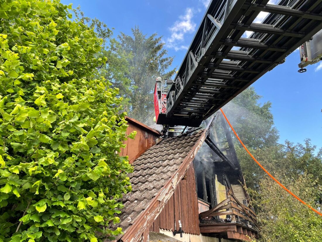 Nachdem die Feuerwehr Thannhausen mit der Drehleiter eingetroffen war, konnte der Brand auch von oben bekämpft werden. Nach gut einer Stunde konnte Feuer aus gemeldet werden. Jedoch gestalteten sich die weiteren Nachlöscharbeiten und die Suche nach Brandnestern schwierig, da das Gebäude stark vermüllt war. Um circa 19:30 Uhr konnte die Feuerwehr dann von der Einsatzstelle abrücken.